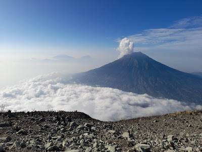 Dari ketinggian, pendaki dapat melihat dengan jelas gunung-gunung lain di Jawa Tengah, seperti Gunung Sumbing, Merapi, Merbabu, hingga Slamet. Pemandangan ini menegaskan Sindoro sebagai salah satu titik terbaik untuk menikmati lanskap pegunungan di Pulau Jawa. - Kawah Aktif